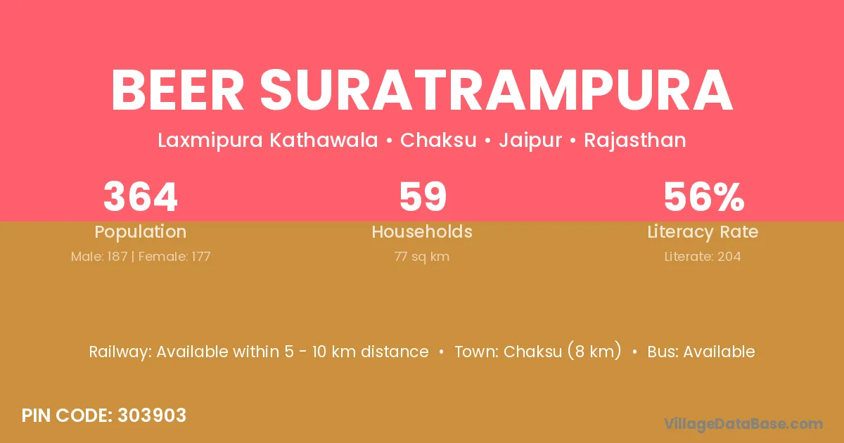 Beer Suratrampura village has a total population of 364 people, of which 187 are males and 177 are females.