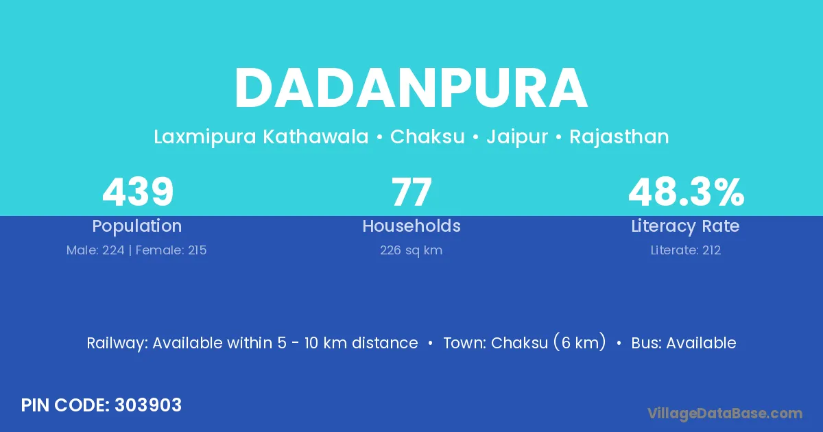 Chaksu (6 km) is the nearest town to Dadanpura village for major economic activities and is located approximately 6 km away.