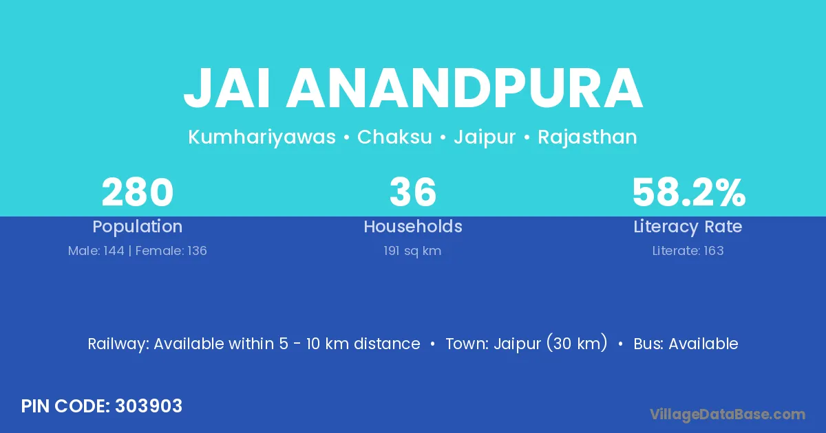 Jai Anandpura village has a total population of 280 people, of which 144 are males and 136 are females.