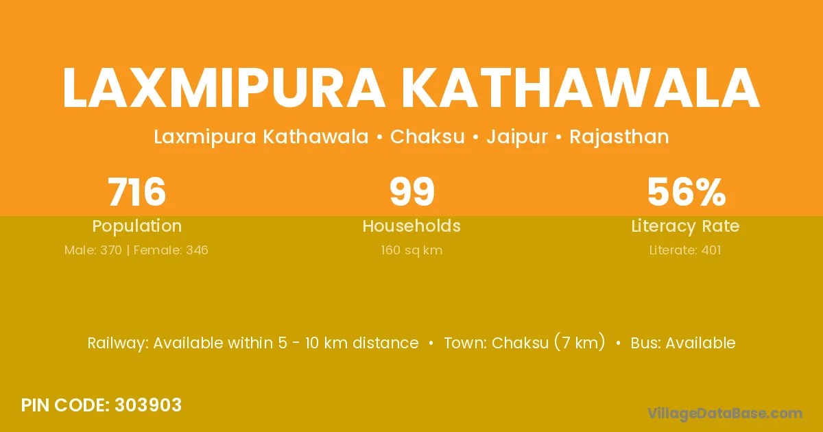 Chaksu (7 km) is the nearest town to Laxmipura Kathawala village for major economic activities and is located approximately 7 km away.
