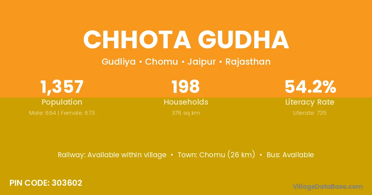 Chhota Gudha village has a total population of 1,357 people, of which 684 are males and 673 are females.