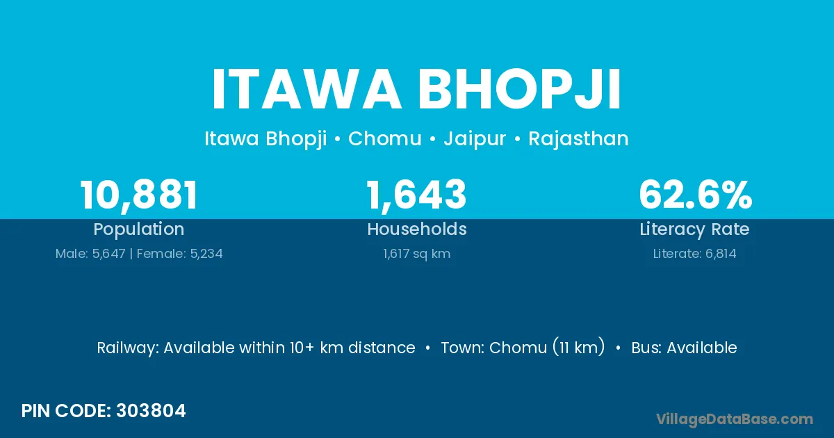 Chomu (11 km) is the nearest town to Itawa Bhopji village for major economic activities and is located approximately 11 km away.