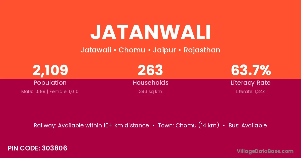 Chomu (14 km) is the nearest town to Jatanwali village for major economic activities and is located approximately 14 km away.