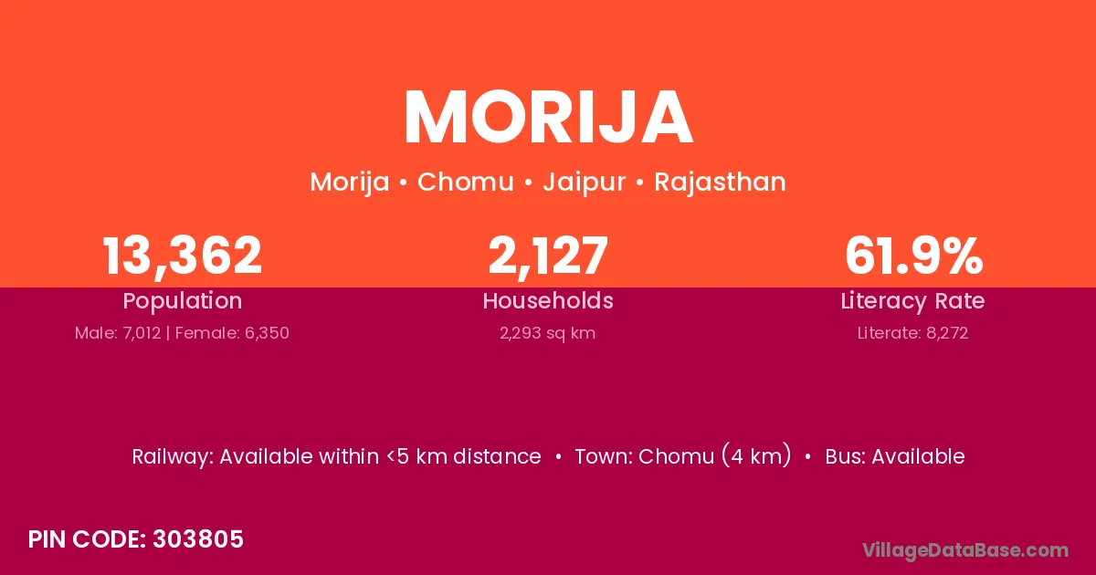 Morija village has a total population of 13,362 people, of which 7,012 are males and 6,350 are females.