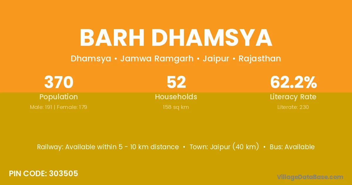 Barh Dhamsya village has a total population of 370 people, of which 191 are males and 179 are females.
