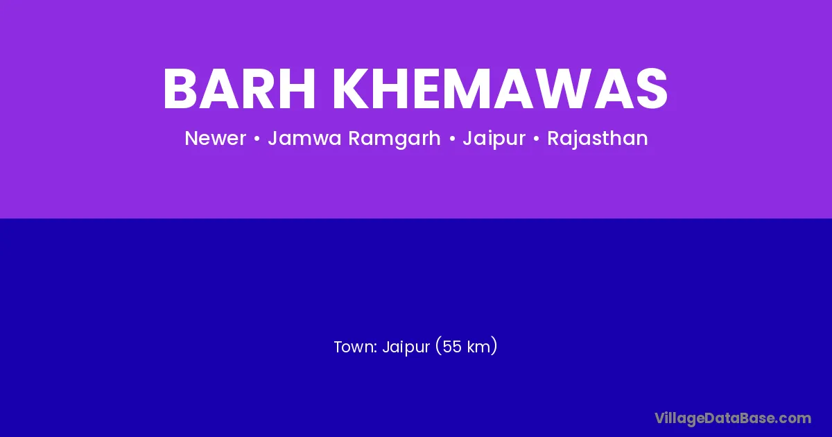 Jaipur (55 km) is the nearest town to Barh Khemawas village for major economic activities and is located approximately 55 km away.