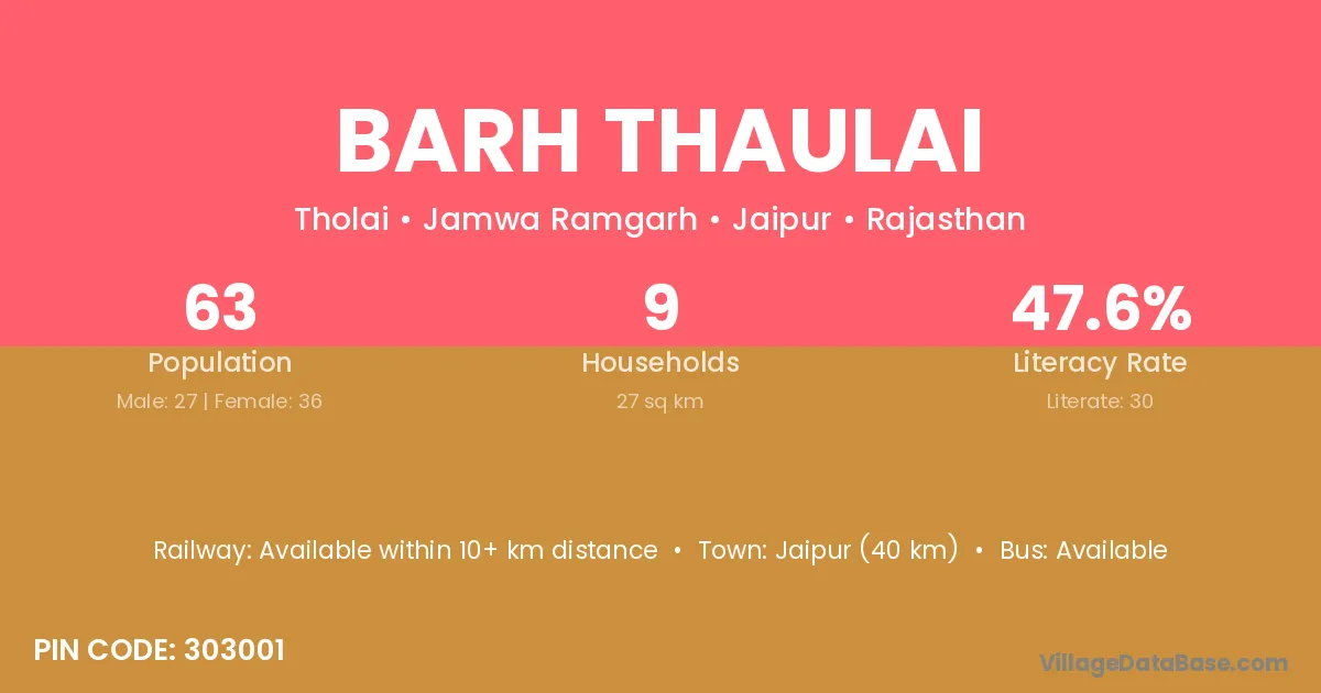 Jaipur (40 km) is the nearest town to Barh Thaulai village for major economic activities and is located approximately 40 km away.