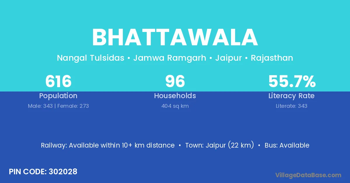 Jaipur (22 km) is the nearest town to Bhattawala village for major economic activities and is located approximately 22 km away.
