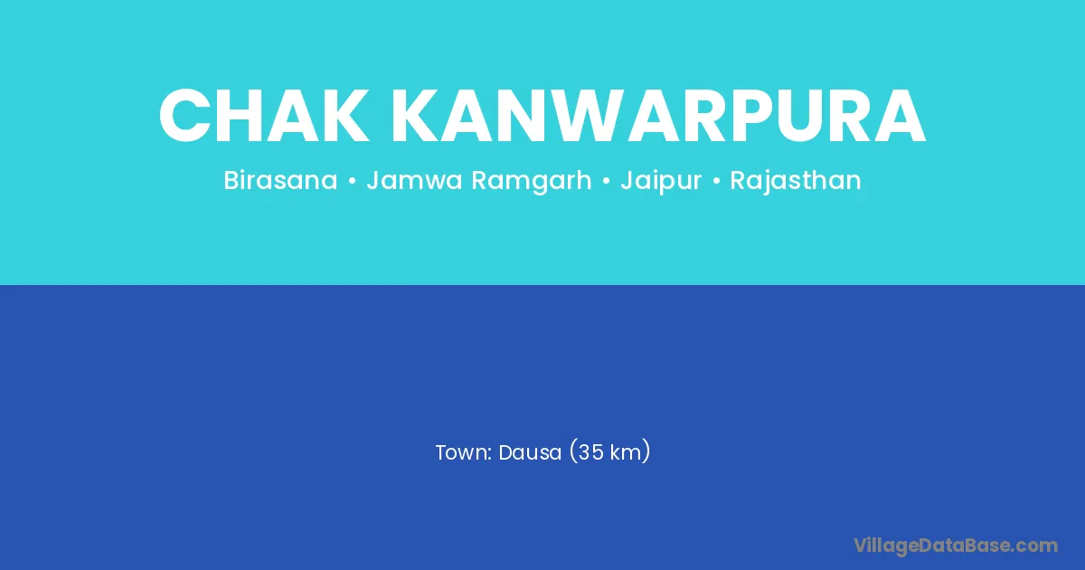 Dausa (35 km) is the nearest town to Chak Kanwarpura village for major economic activities and is located approximately 35 km away.