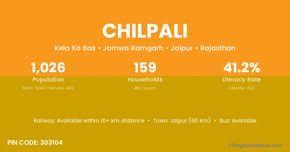 Chilpali village has a total population of 1,026 people, of which 544 are males and 482 are females.