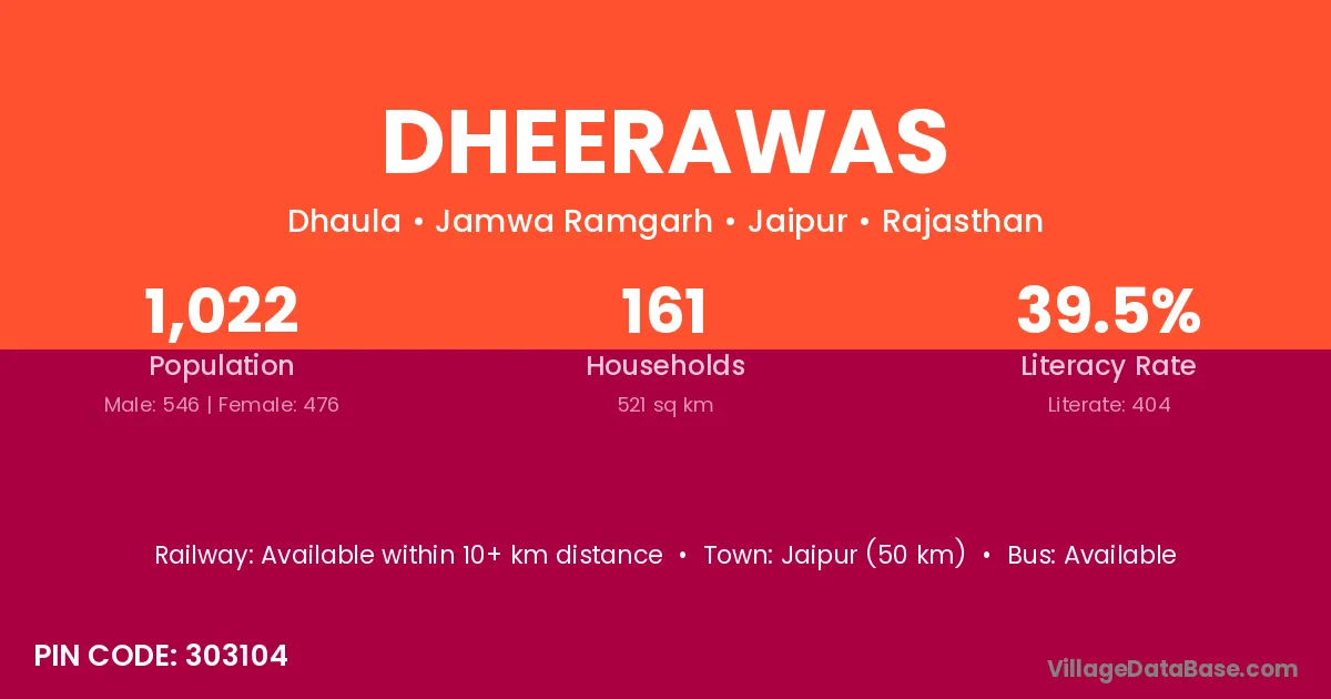 Dheerawas village has a total population of 1,022 people, of which 546 are males and 476 are females.