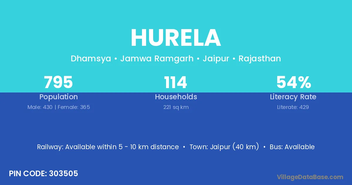 Jaipur (40 km) is the nearest town to Hurela village for major economic activities and is located approximately 40 km away.