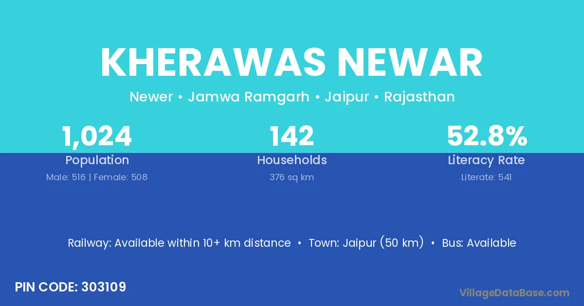 Jaipur (50 km) is the nearest town to Kherawas Newar village for major economic activities and is located approximately 50 km away.