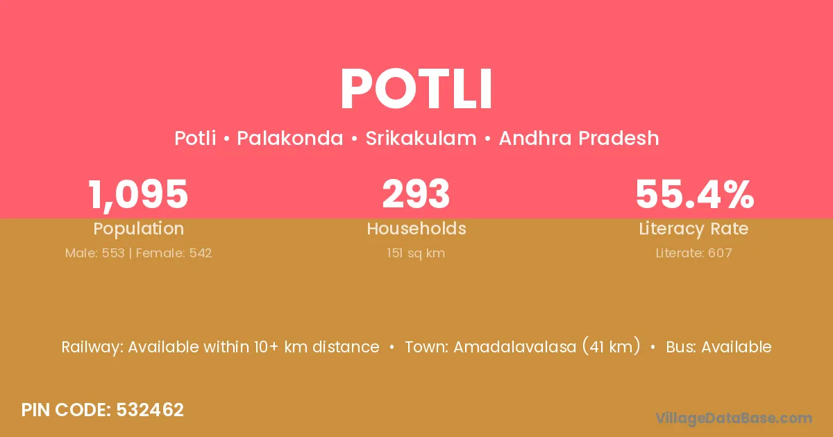 The population of Potli village is distributed between literate and illiterate residents as follows: