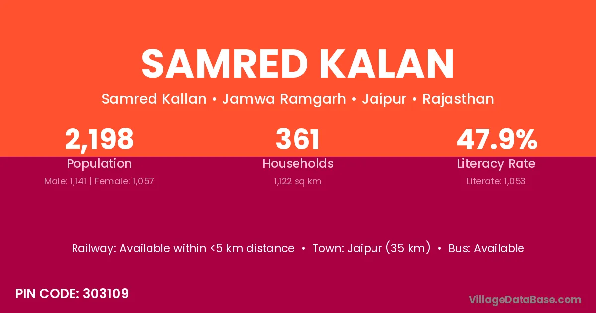Jaipur (35 km) is the nearest town to Samred Kalan village for major economic activities and is located approximately 35 km away.