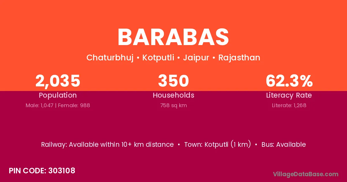 Kotputli (1 km) is the nearest town to Barabas village for major economic activities and is located approximately 1 km away.