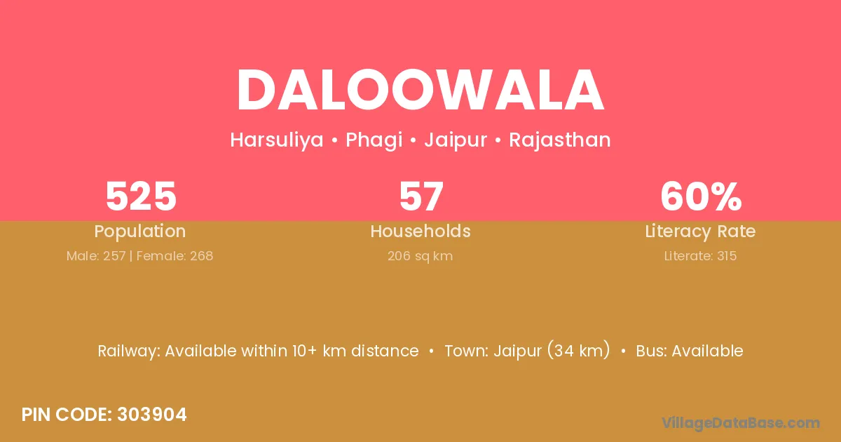 Jaipur (34 km) is the nearest town to Daloowala village for major economic activities and is located approximately 34 km away.