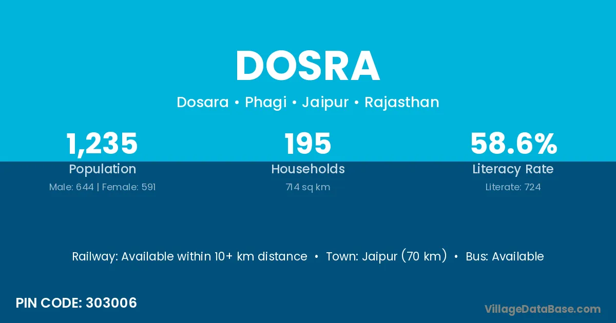 Jaipur (70 km) is the nearest town to Dosra village for major economic activities and is located approximately 70 km away.