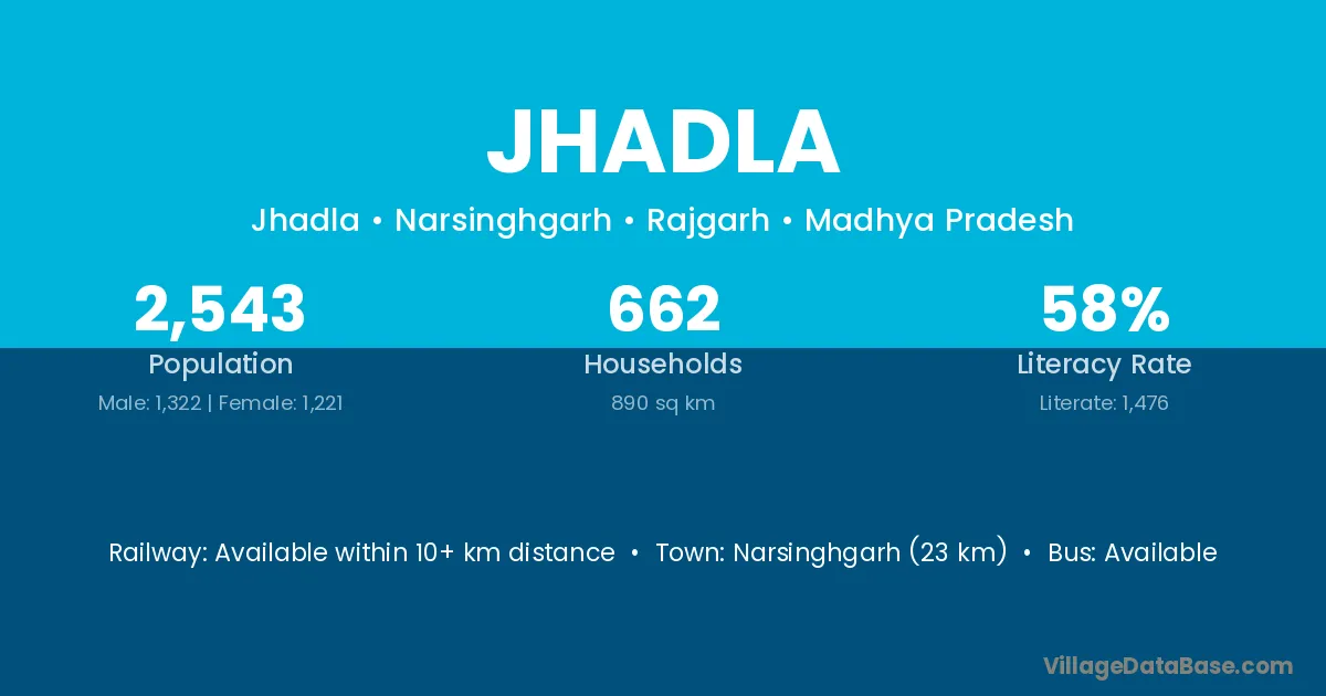 The literacy rate of Jhadla village is 51.44%. Male literacy stands at 64.16% and female literacy at 38.06%.