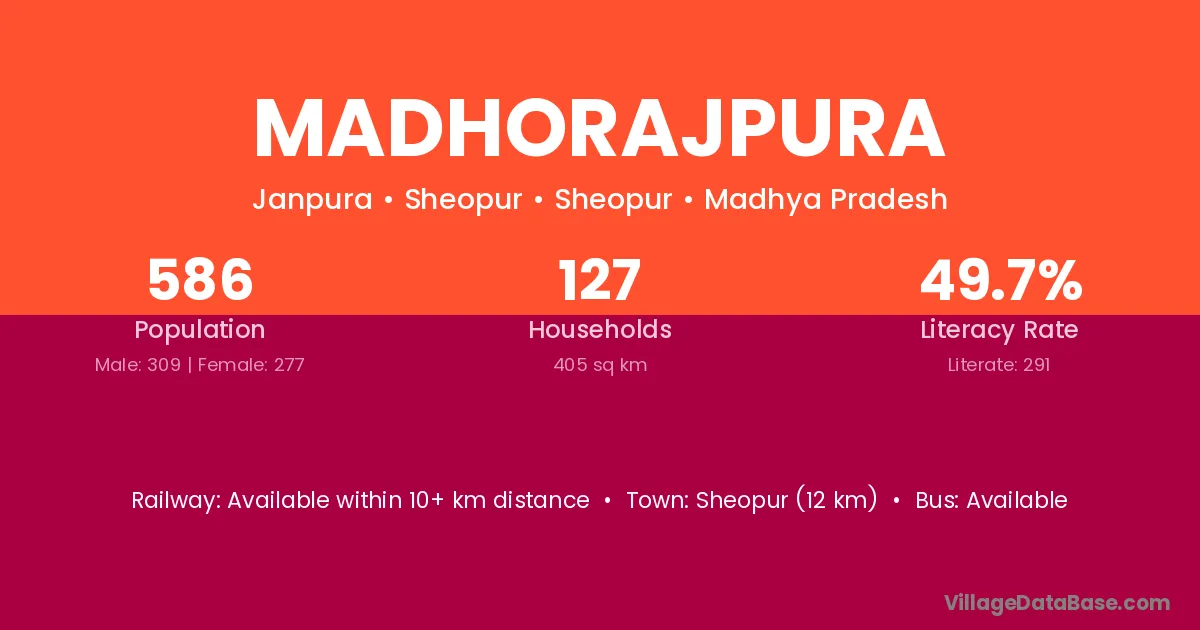 The literacy rate of Madhorajpura village is 65.38%. Male literacy stands at 75.03% and female literacy at 55.10%.
