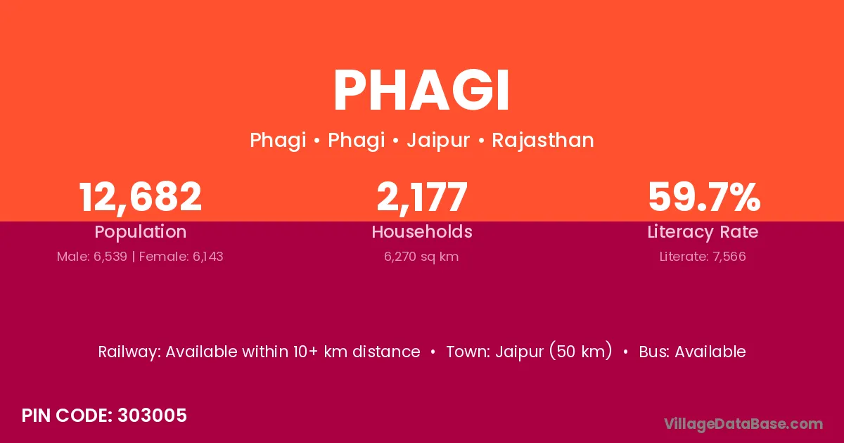 Jaipur (50 km) is the nearest town to Phagi village for major economic activities and is located approximately 50 km away.