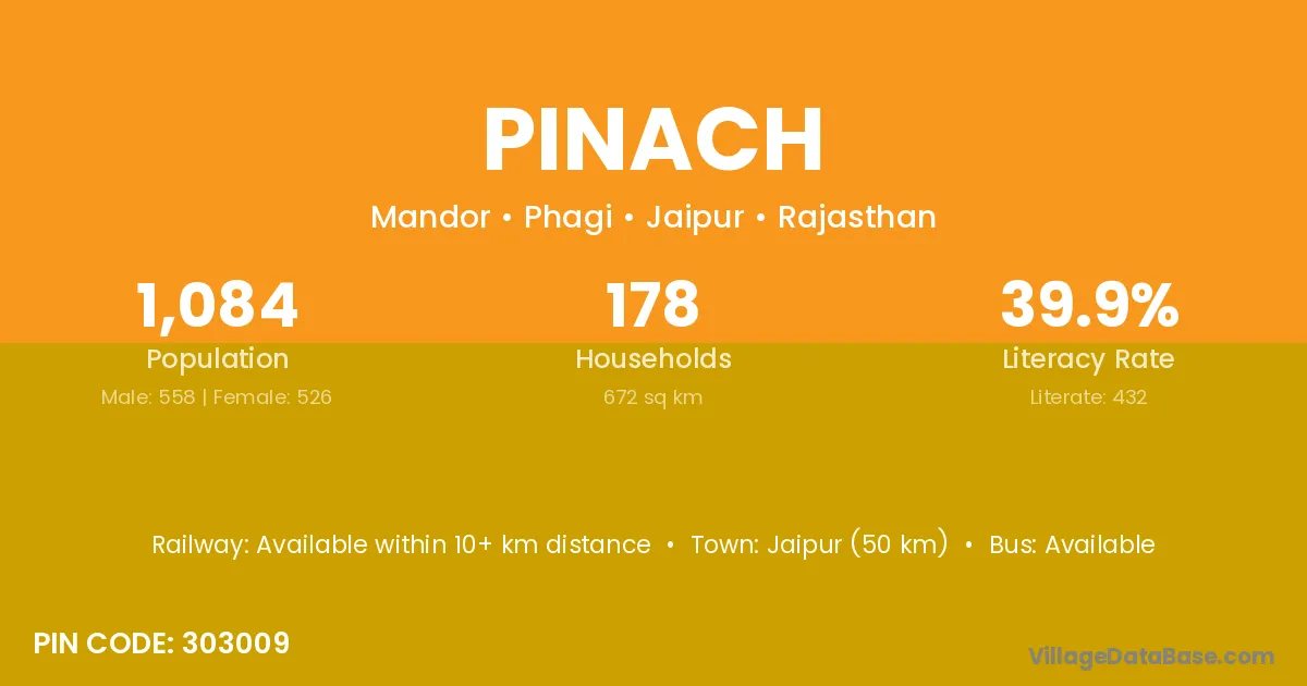 Jaipur (50 km) is the nearest town to Pinach village for major economic activities and is located approximately 50 km away.