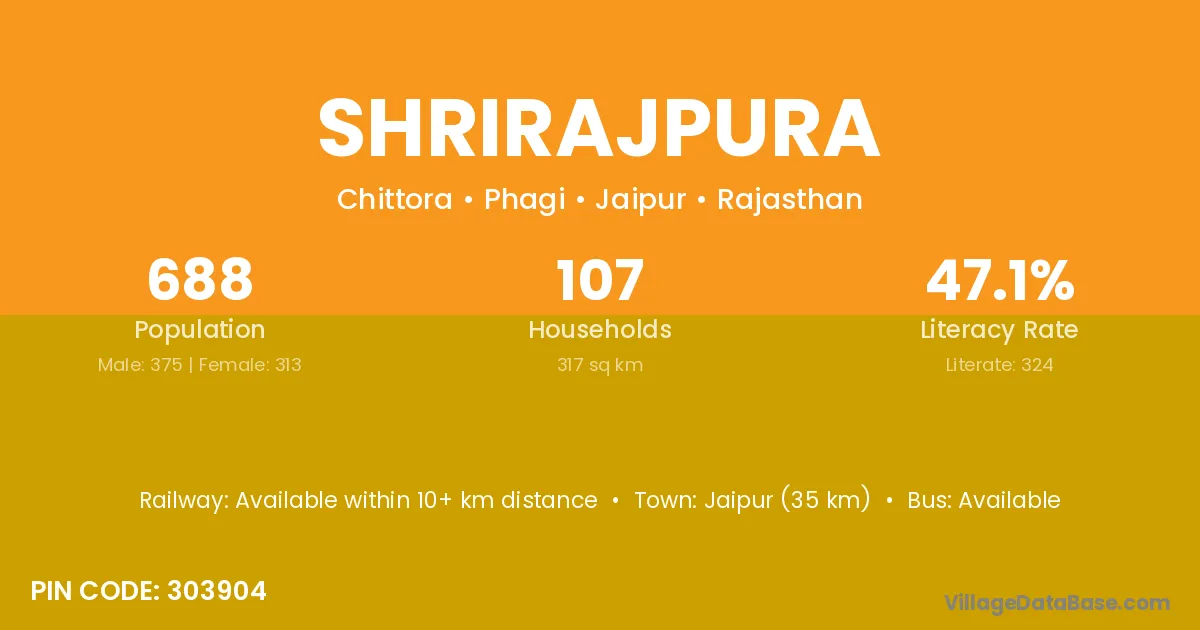 Jaipur (35 km) is the nearest town to Shrirajpura village for major economic activities and is located approximately 35 km away.