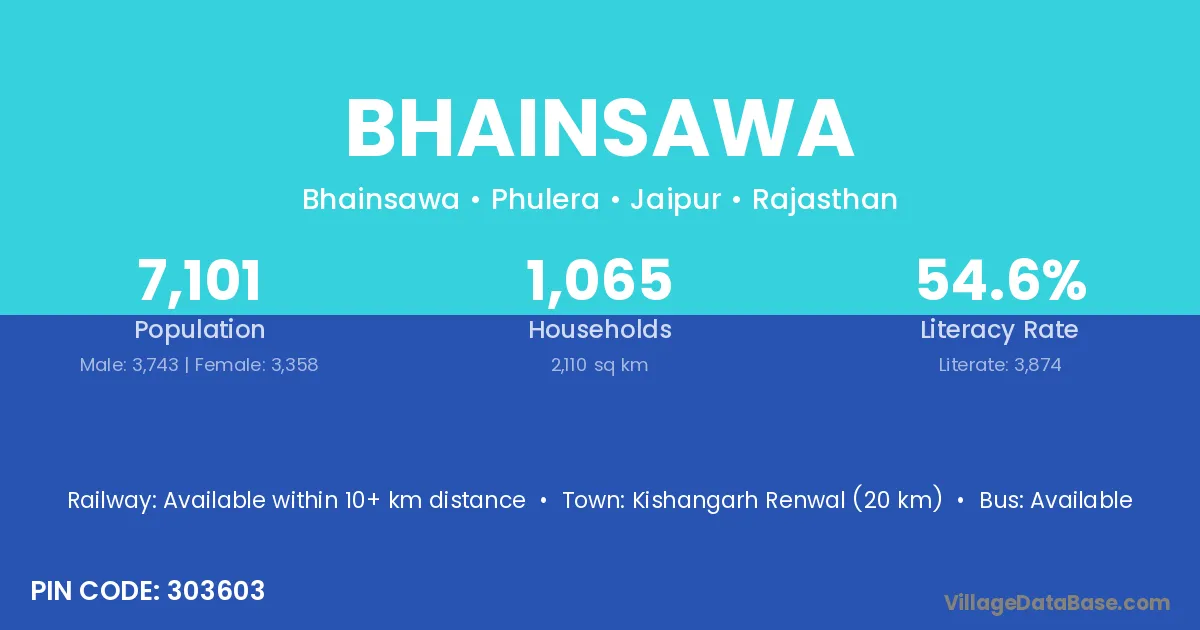 Kishangarh Renwal (20 km) is the nearest town to Bhainsawa village for major economic activities and is located approximately 20 km away.