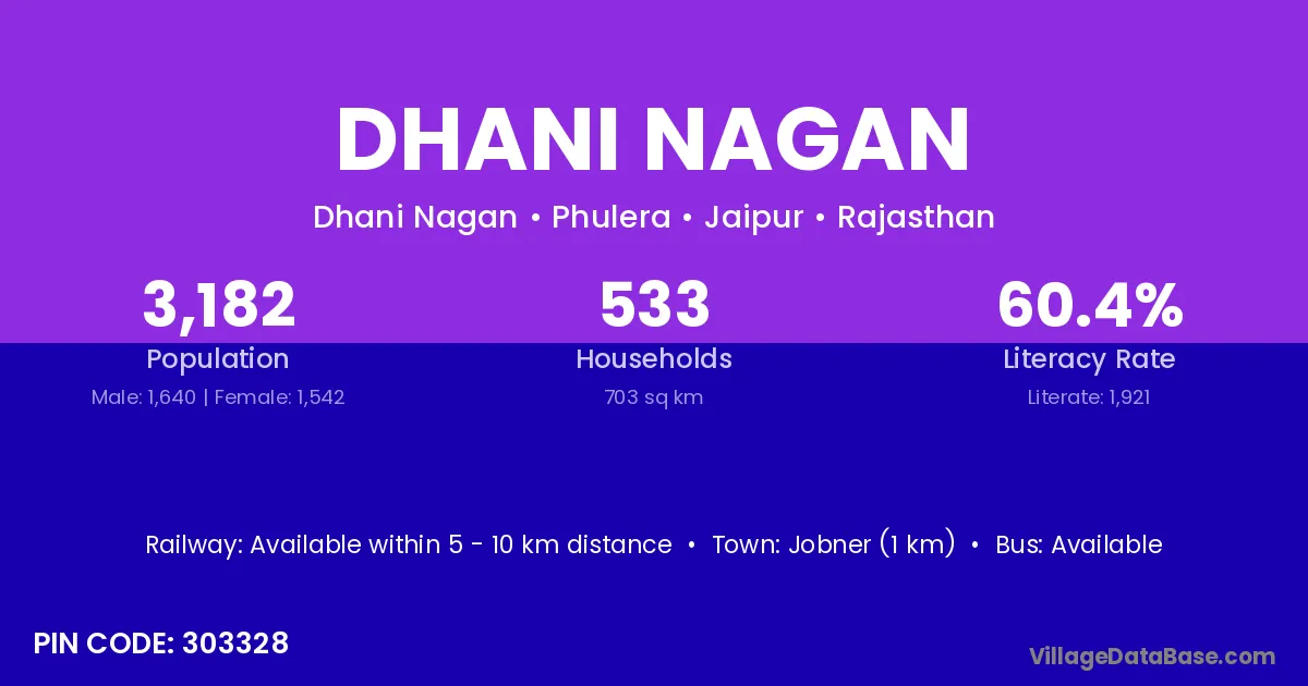 Jobner (1 km) is the nearest town to Dhani Nagan village for major economic activities and is located approximately 1 km away.