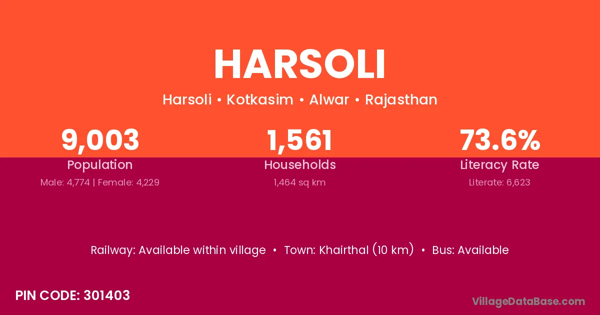 Kishangarh Renwal (9 km) is the nearest town to Harsoli village for major economic activities and is located approximately 9 km away.