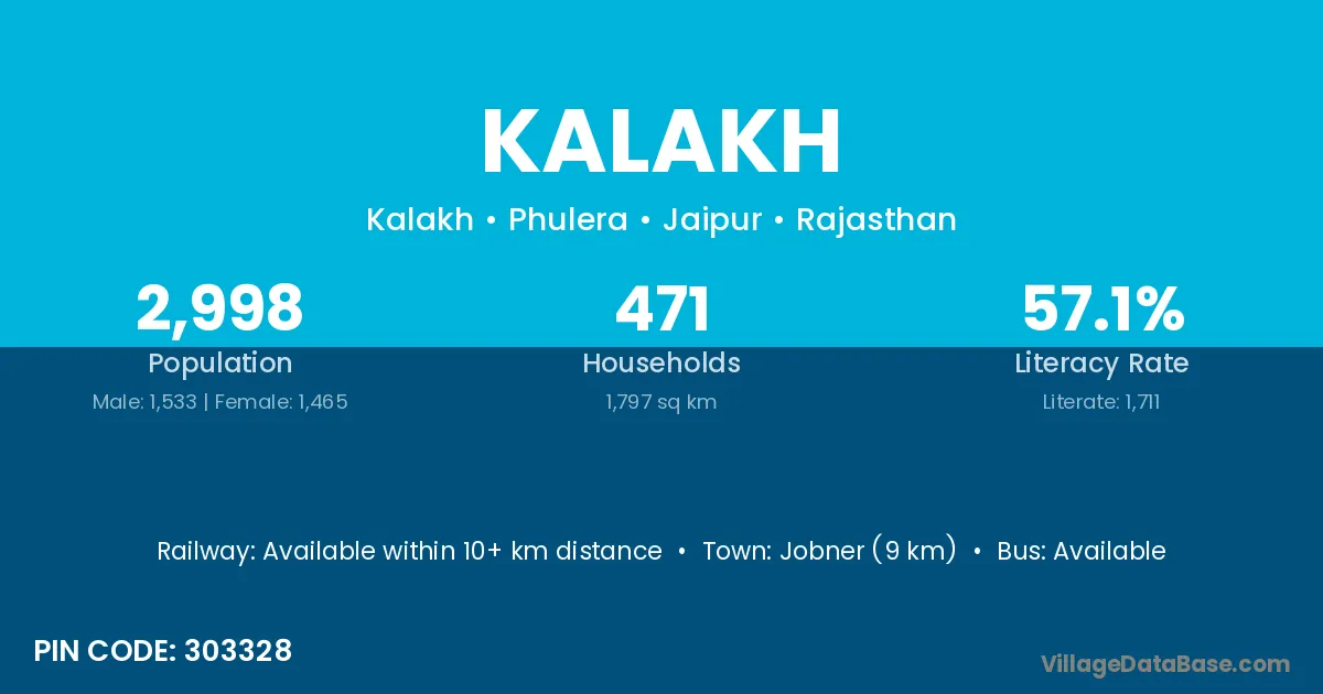 Jobner (9 km) is the nearest town to Kalakh village for major economic activities and is located approximately 9 km away.