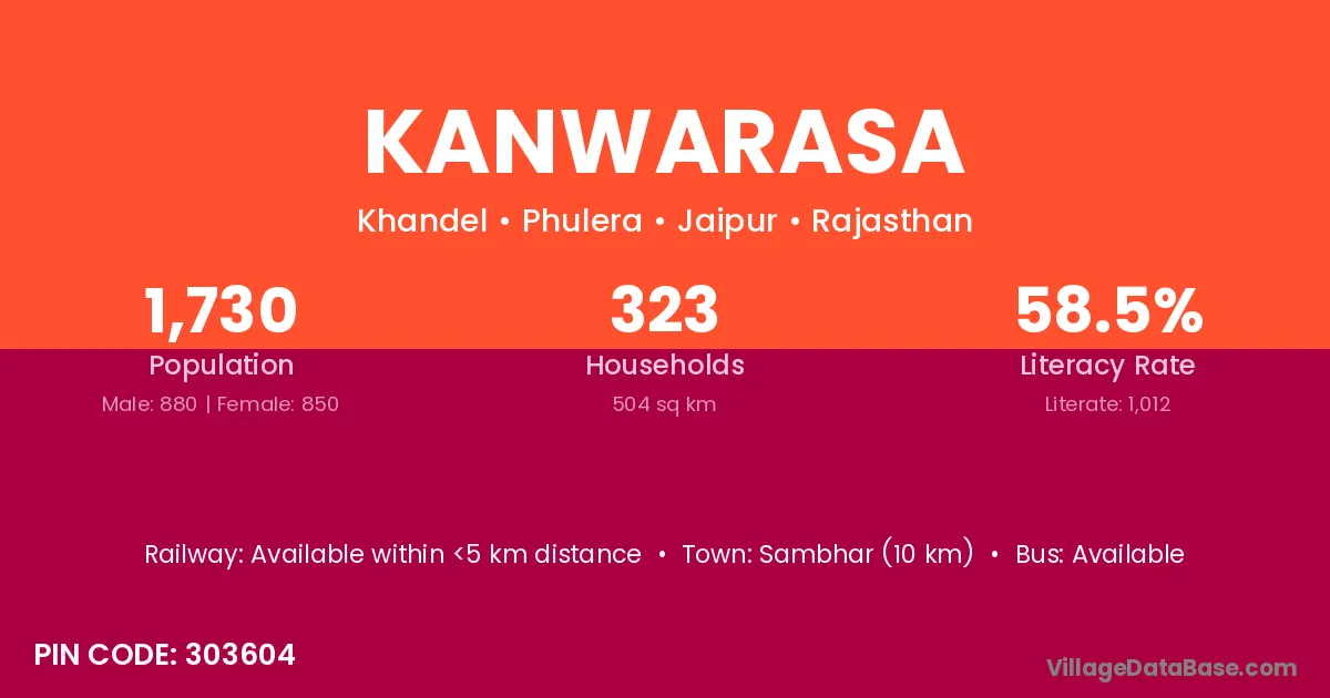 Sambhar (10 km) is the nearest town to Kanwarasa village for major economic activities and is located approximately 10 km away.