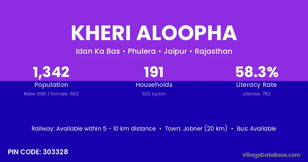 Jobner (20 km) is the nearest town to Kheri Aloopha village for major economic activities and is located approximately 20 km away.