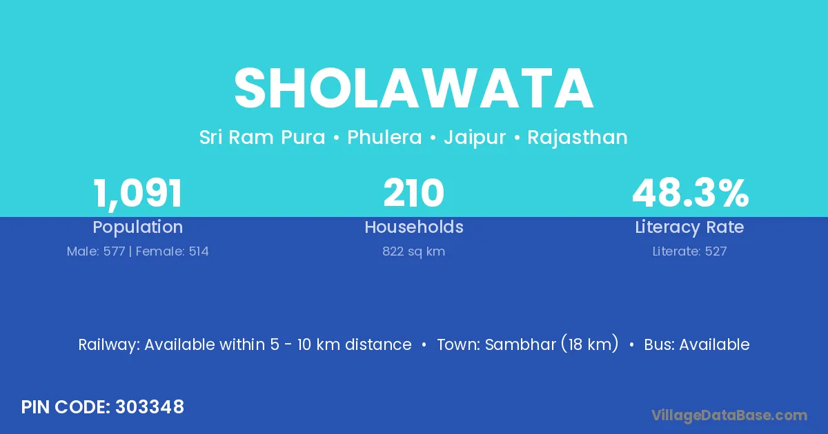 Sambhar (18 km) is the nearest town to Sholawata village for major economic activities and is located approximately 18 km away.