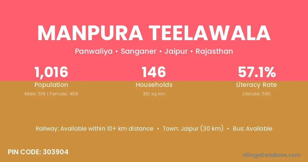 Jaipur (30 km) is the nearest town to Manpura Teelawala village for major economic activities and is located approximately 30 km away.