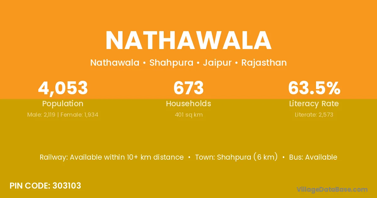 Shahpura (6 km) is the nearest town to Nathawala village for major economic activities and is located approximately 6 km away.