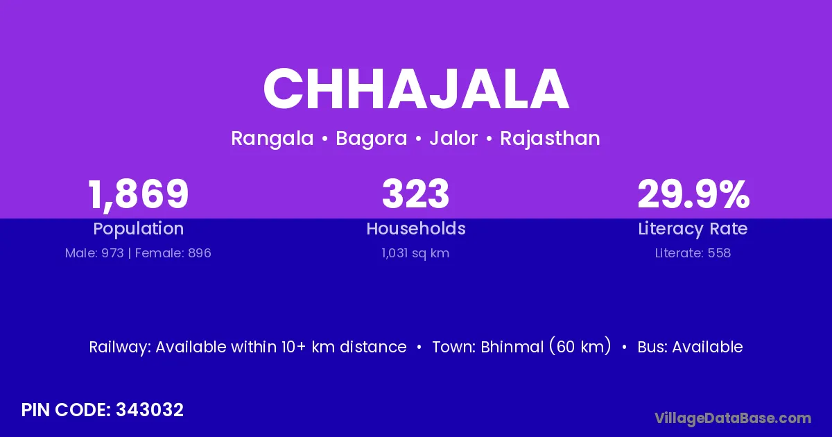 Bhinmal (60 km) is the nearest town to Chhajala village for major economic activities and is located approximately 60 km away.