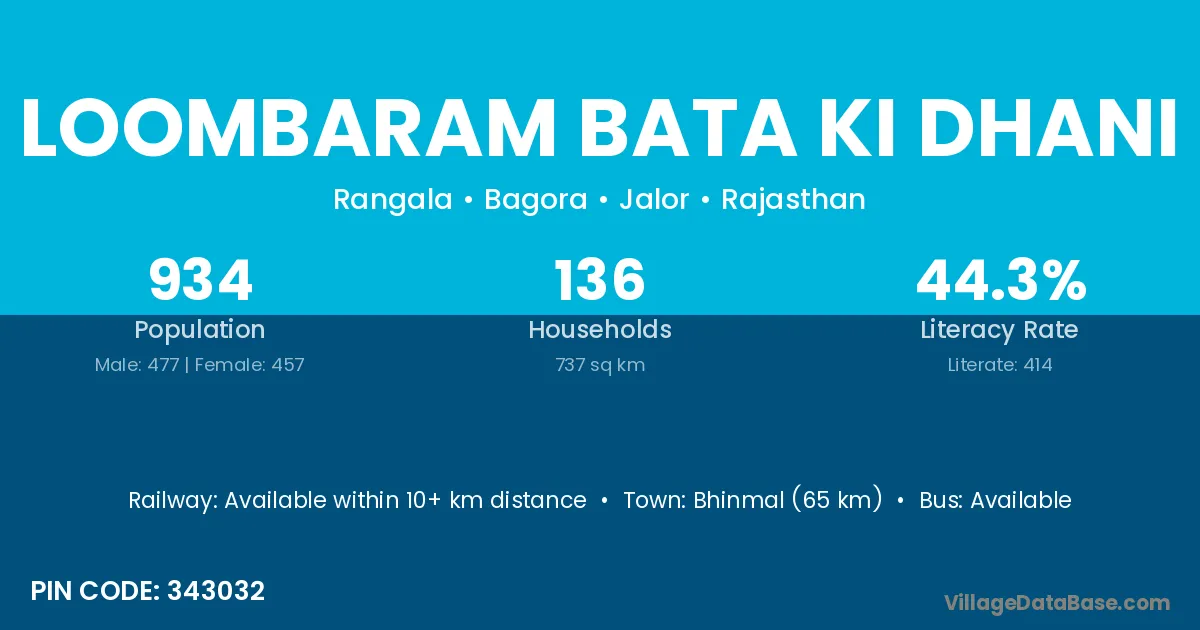 Bhinmal (65 km) is the nearest town to Loombaram Bata Ki Dhani village for major economic activities and is located approximately 65 km away.