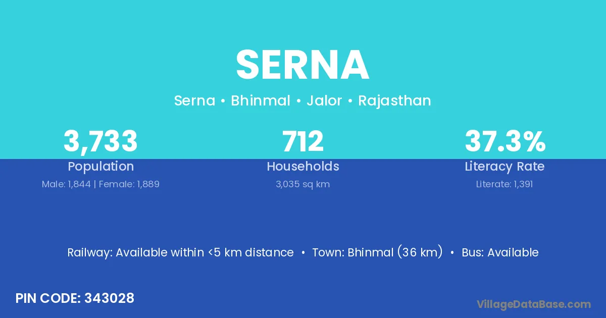 Bhinmal (36 km) is the nearest town to Serna village for major economic activities and is located approximately 36 km away.