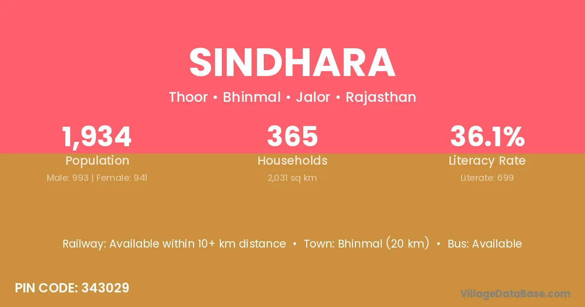 Bhinmal (20 km) is the nearest town to Sindhara village for major economic activities and is located approximately 20 km away.