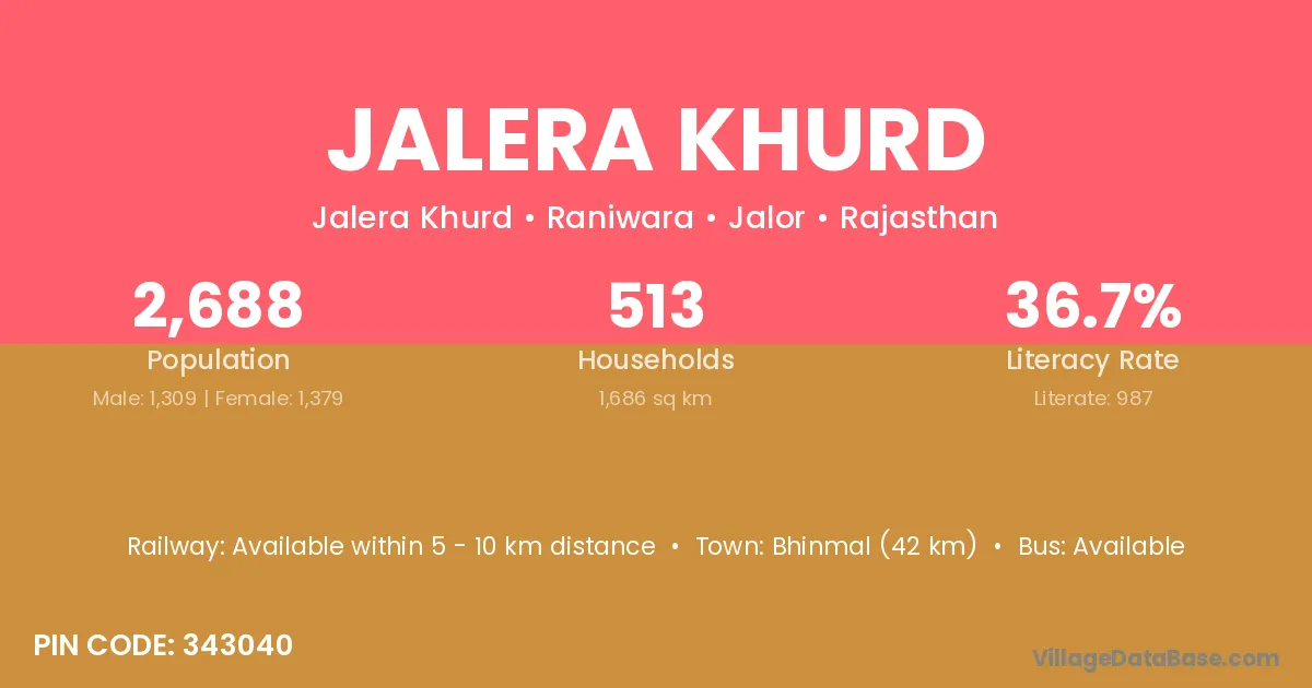 Bhinmal (42 km) is the nearest town to Jalera Khurd village for major economic activities and is located approximately 42 km away.