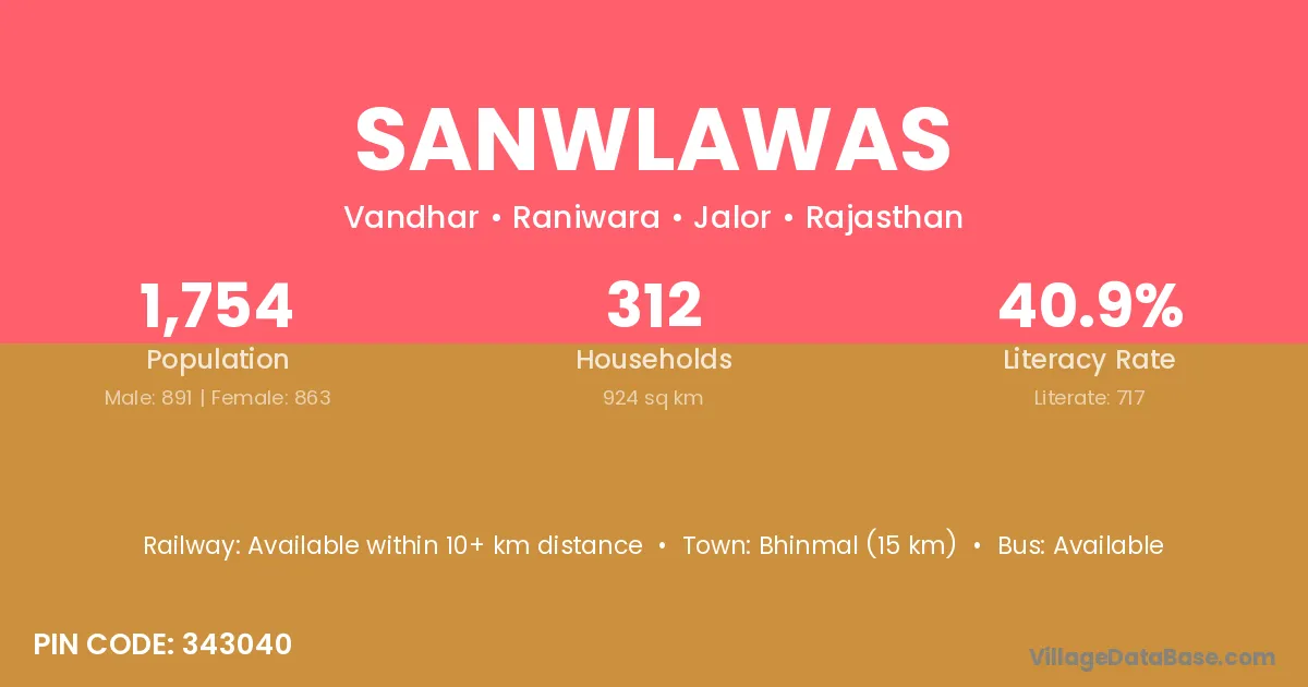 Bhinmal (15 km) is the nearest town to Sanwlawas village for major economic activities and is located approximately 15 km away.
