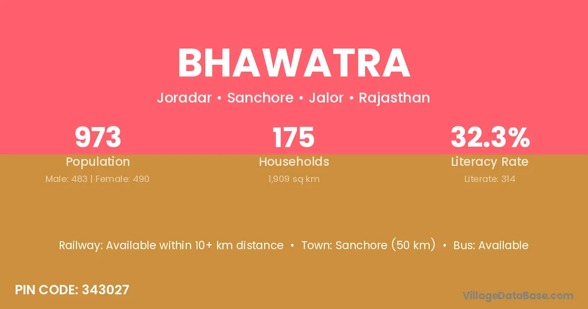 Sanchore (50 km) is the nearest town to Bhawatra village for major economic activities and is located approximately 50 km away.