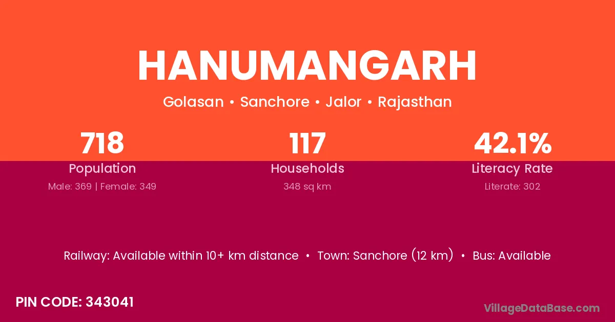 Sanchore (12 km) is the nearest town to Hanumangarh village for major economic activities and is located approximately 12 km away.
