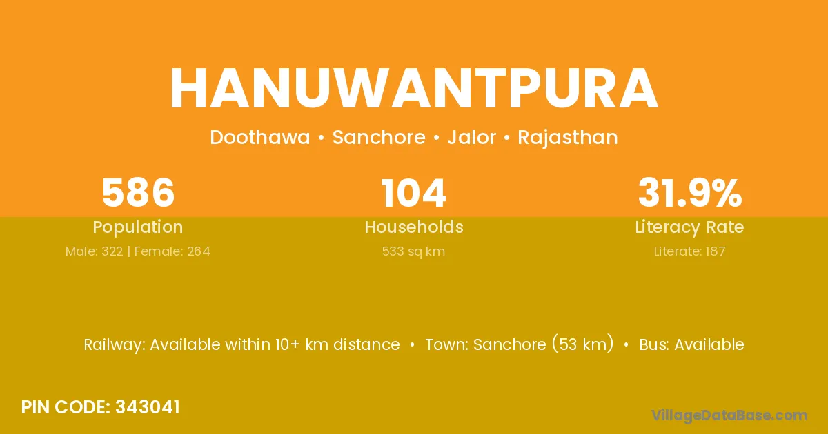 Sanchore (53 km) is the nearest town to Hanuwantpura village for major economic activities and is located approximately 53 km away.