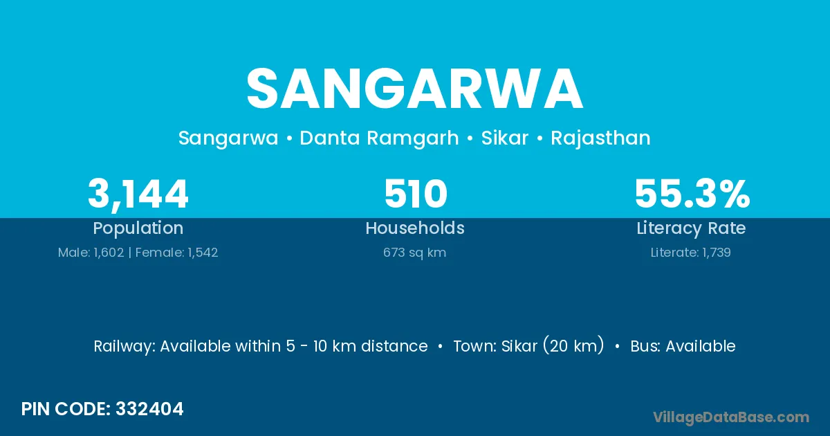 Sanchore (20 km) is the nearest town to Sangarwa village for major economic activities and is located approximately 20 km away.