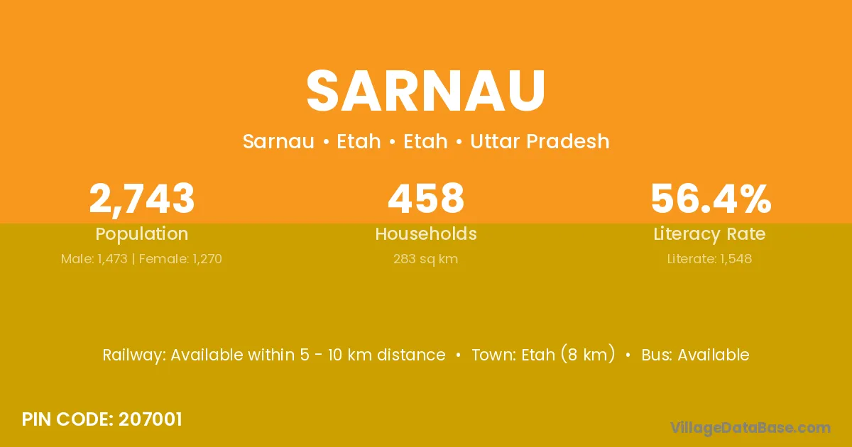 The literacy rate of Sarnau village is 50.80%. Male literacy stands at 64.25% and female literacy at 36.49%.