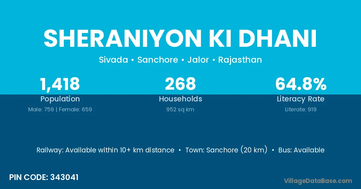 Sheraniyon Ki Dhani village has a total population of 1,418 people, of which 759 are males and 659 are females.