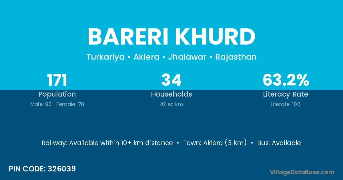 Aklera (3 km) is the nearest town to Bareri Khurd village for major economic activities and is located approximately 3 km away.