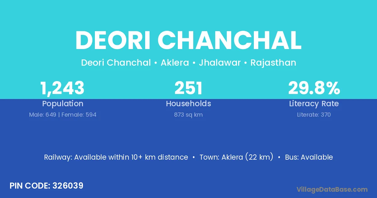 Aklera (22 km) is the nearest town to Deori Chanchal village for major economic activities and is located approximately 22 km away.
